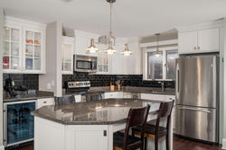 Spectacular water views from this updated all brick end unit townhouse in sought after Lakefront Commons. Bright, open floor plan features living/dining with custom built ins and woodturning fireplace. Newer kitchen with customized cabinets, granite and stainless steel appliances. Half bath. Enjoy wonderful views of the park and water from the living room deck. Master bedroom with en-suite bath, private deck and views of the water as well as second bedroom and full bath complete the 3rd floor. Finished laundry room is "other room" , new furnace, newer roof and AC, 2.5 car garage and NO HOA!