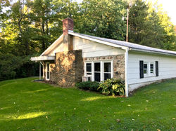 Cozy, comfy retreat among the trees! Beautiful beamed great room floor plan with wonderful stone fireplace hearth with wood burning stove. Spacious kitchen with pantry. Convenient, large laundry/utility room. Tons of grass yard for play, woods for hiking, great fire pit. Enjoy the views of woods and stars. Plenty of storage in the attic and 15 x 20 shed. Includes two parcels of land, small parcel has well and holding tank. Can not see house from road!